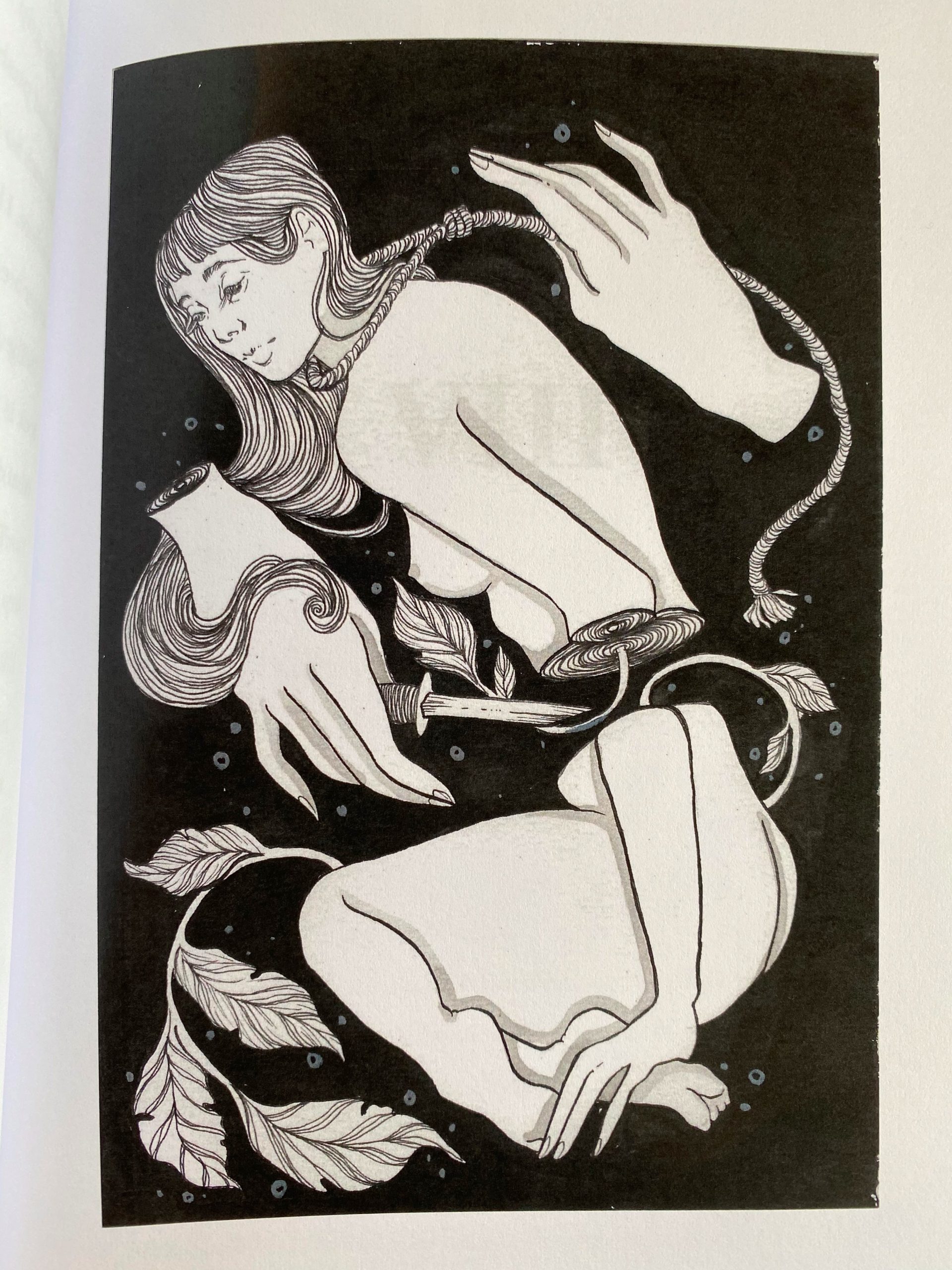 The novel is also interspersed with haunting and beautiful illustrations by Mariana Magaña de Lio which richly supplement the tone of fierce, aching tenderness. These illustrations speak both to the thematic content of the novella as well as the structural ekphrastic form—that the novella is a written fictional meditation on the album Ceremonials, and the visual art supplements this multi-genre exploration. The multitudinous form generously lends itself to reflecting on the role of liminality in genre-crossing as well as in the space between life and death, love and loss. Music, prose, and visual art unite in this work, asking us to consider the ways in which these unique artistic compositions all offer insights on themes of grief, sensuous beauty, and poignant love.