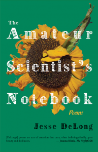 Anyone who has vaguely intuited an unknown poetic language behind terms like electroweak, phosphorous, chlorofluorocarbons—or even behind the law of gravity- will find a skillful interpreter in Jesse DeLong. His first poetry collection, The Amateur Scientist’s Notebook, sees nature not only through the eye, but also through the microscope, the textbook, and the diagram. What a human being is within the linguistic fields of family, romance, or religion is rubbed against who we are in the language of science; the poetry is the spark produced by this friction: “DNA, disturbed in a sun splotch, carry forward, if you would, / the bright wreckage of us.”